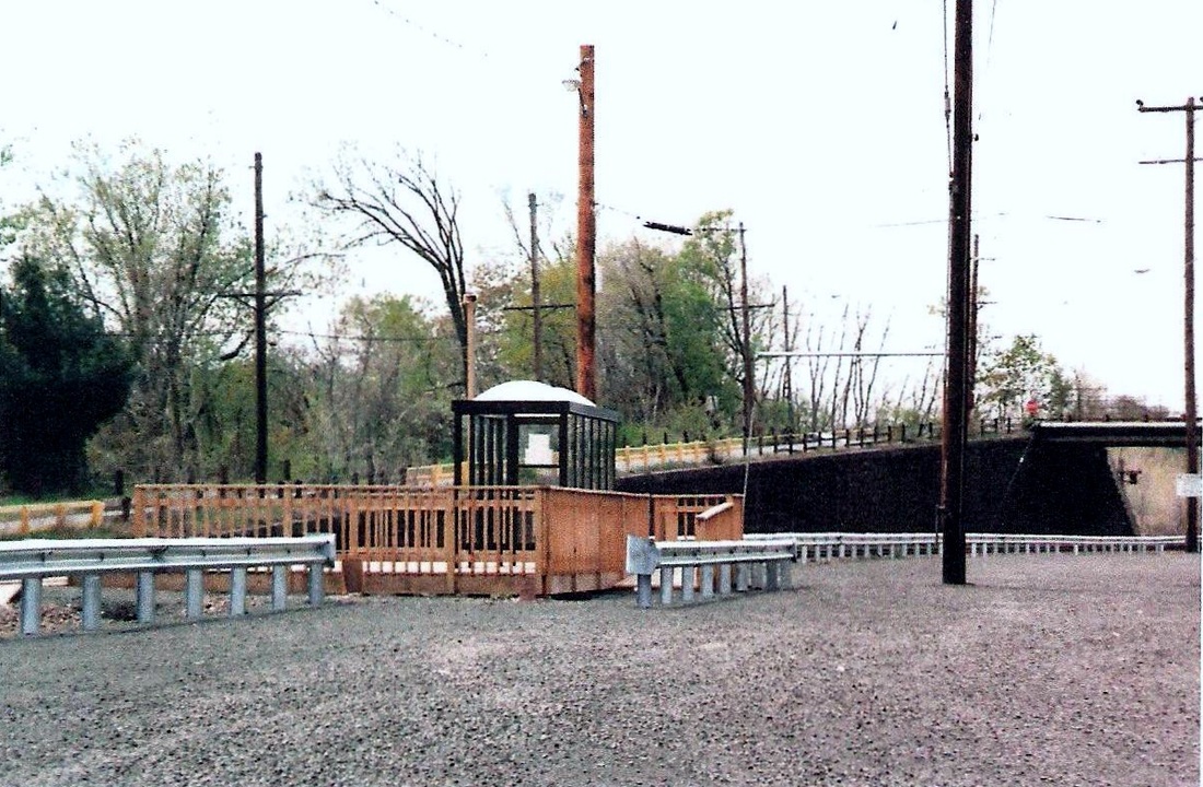 This platform with plexiglass enclosure stood once again on the north side of the tracks, the site of the preceding two stations. It debuted with the first incarnation of Shore Line East service in 1990. In August, 1991 P&W got trackage rights on the NEC and the photo at [1] shows one its trains passing the SLE shelter. The shot at [2] looks west toward the Kirkham St. overpass. [rev121816, 042619]