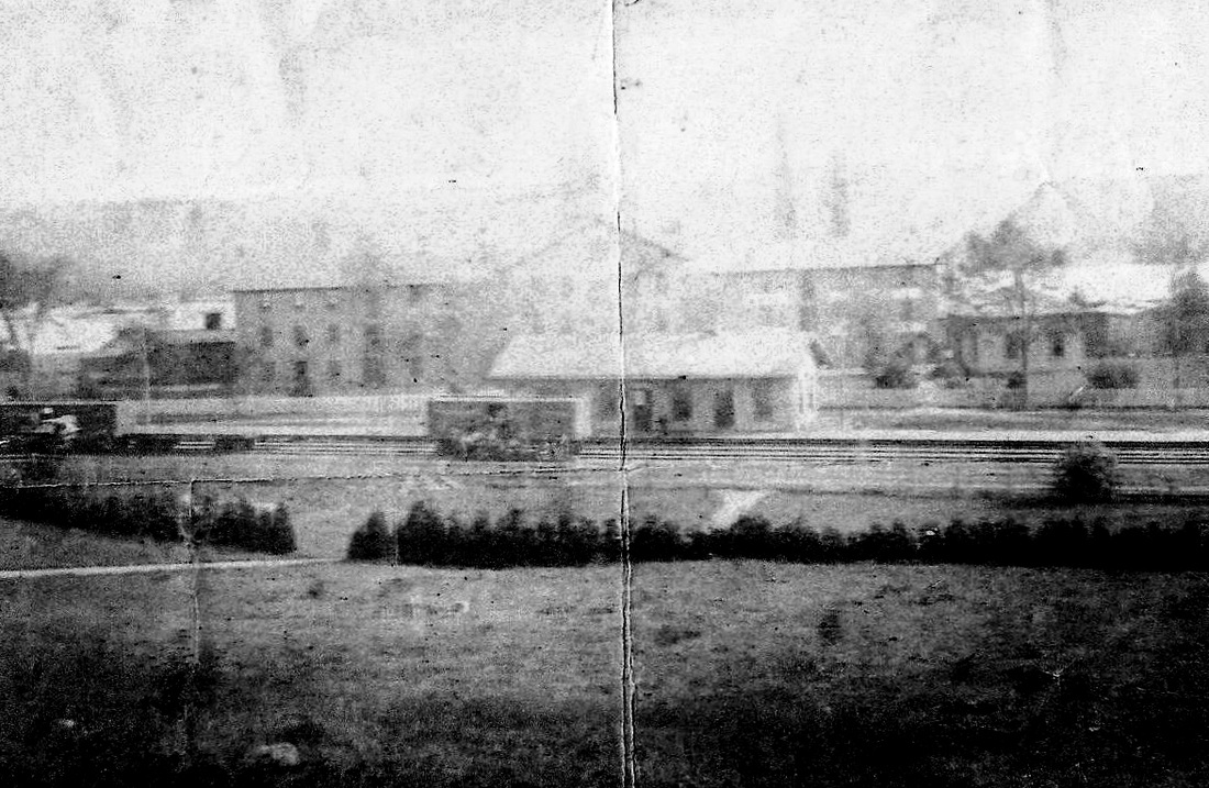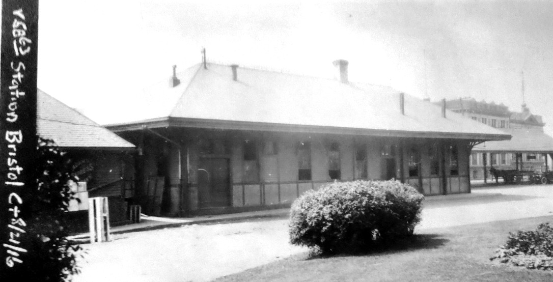 This was the small replacement depot built after BRISTOL1 burned. It was said to be "up the track" which most likely meant a little west of the earlier structure. In March, 1887, a year after the fire when a new depot was reported to finally be in the offing, the Press said "it is now about a year since the old station was burned, and the public has had to put up with a dry goods box all this time, and not always good humoredly. A year is a long time to wait and much inclement weather makes it seem longer still." A dry goods box, indeed! This small depot would be used from 3/20/1886 until 10/1/1887 when BRISTOL3 opened. We have no picture yet of this structure that we are aware of but, as frugal as railroads were in those days, it may yet show up in another photo if it was put to further use after it ceased serving passengers. [REFS: BWP/03/17/1887/04][rev121816]
