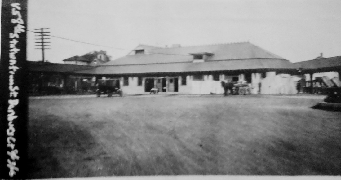 The new depot is seen at left in a 1907 post card and in the 11/2/1916 val photo at right, as well as a side view in the middle shot. The Register reported in June, 1885 that a replacement depot was being built for the burned-out DARIEN1. With the exception of the dormers added here, the new brick station was similar to others of the period, FAIRFIELD2 and MILFORD2, and cost $6,800. As reported in the Stamford Advocate in a "Fifty Years Ago" item, DARIEN2 also burned in a 3/6/1935 fire that did $20,000 worth of damage and caused the railroad to shut down power to the tracks. The station was torn down and replaced by a small brick building that is seen below as DARIEN4. [REFS: NHER/06/03/1885/01; NHAR14.1886.11; NL17.8.10; R46][rev100312]