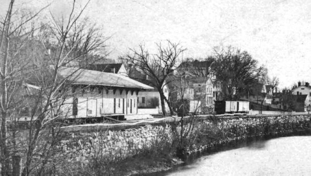 A small station was located here where the NH&D met and crossed the NRR on the east bank of the Housatonic River just below its confluence with the Naugatuck River. It is unclear as to how much interchange of passengers and freight took place here from 1871 until the hostile NRR was browbeaten into pooling freight with the Derby road in 1880. At that time, a newer station was built and this one was moved a little south and repurposed. The stop was called DERBY on the NH&D timetables until 1889. [rev121514]