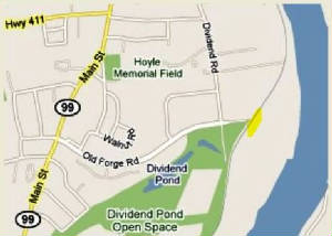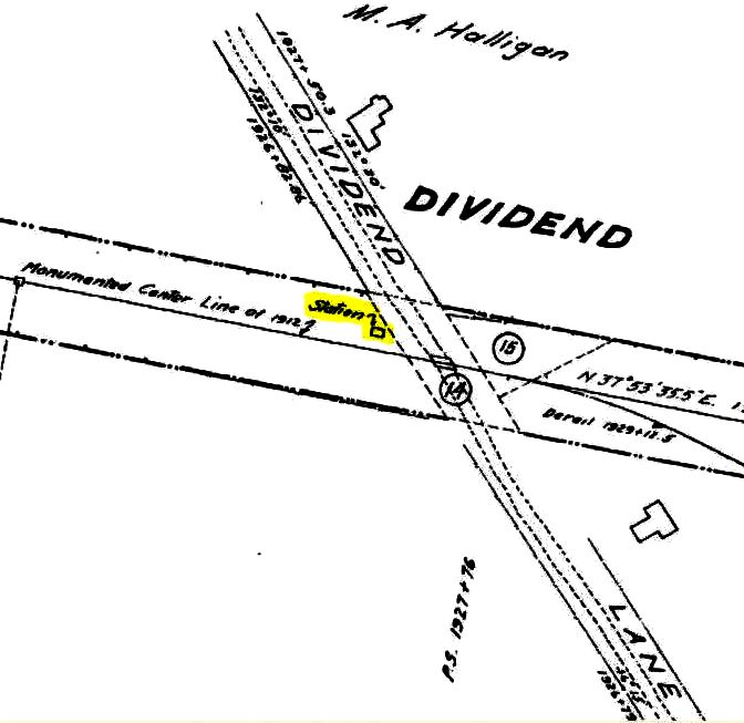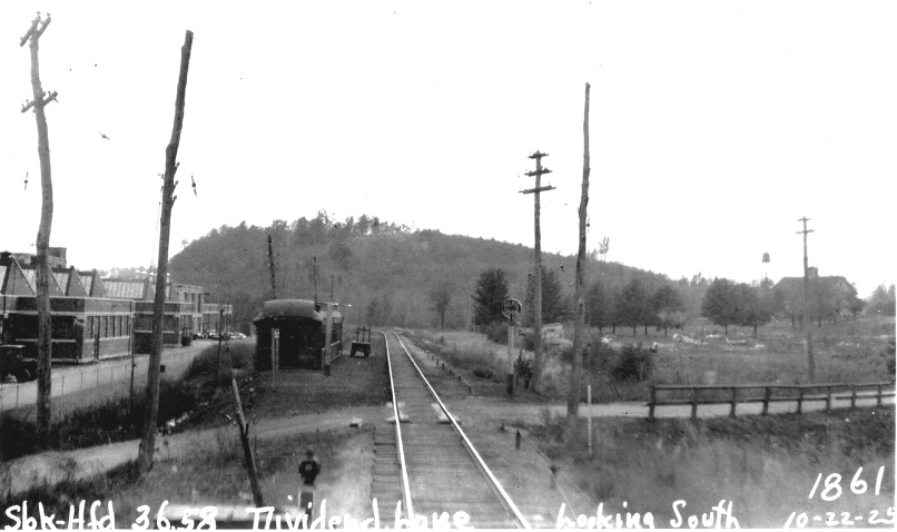This small station on the CV in the southern part of Rocky Hill was not established until ca. 1900 and is found on our 1907 and 1911TTs. The layout on the 1915 valuation map shows a small depot structure. We have no photo yet of whatever stood here. The village was so named because parcels of land were extended at one time producing an increase in the value of the properties, a dividend. [rev121614, 101320]