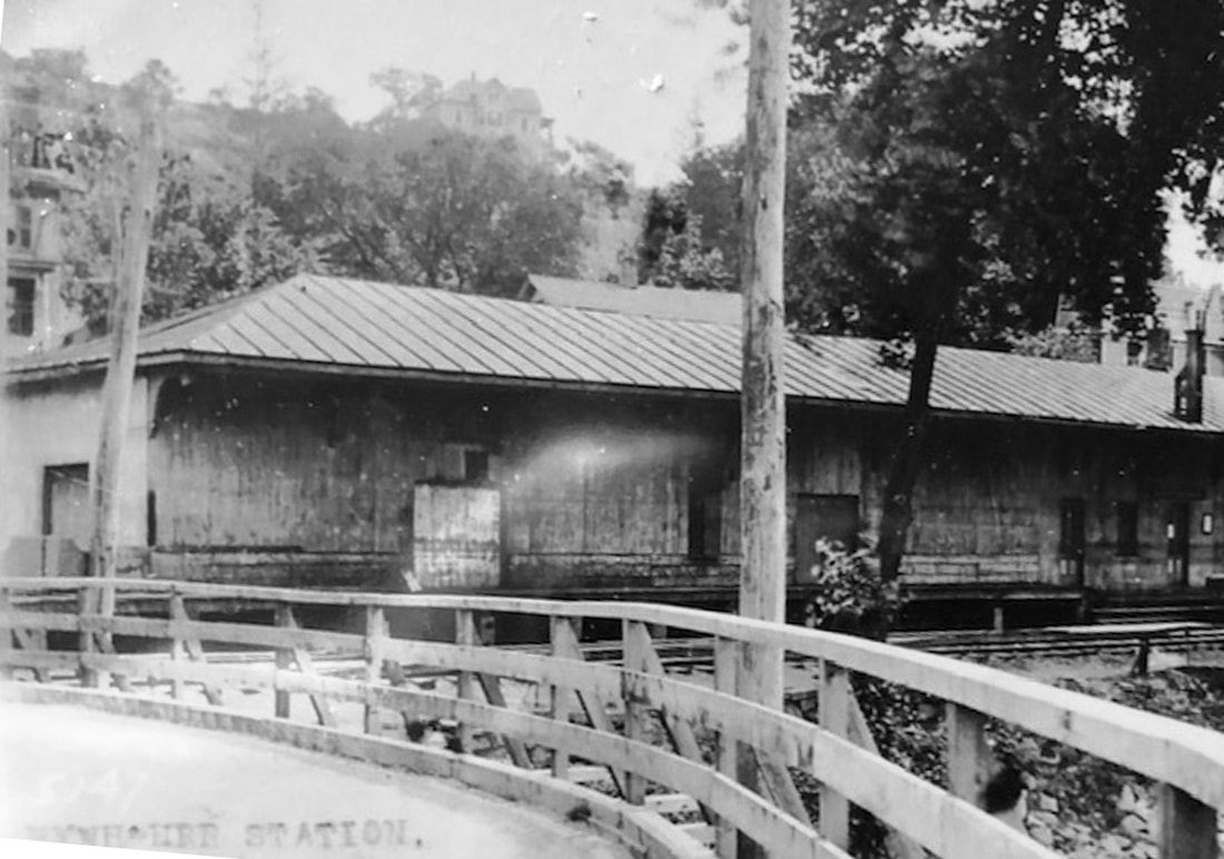 This was among the stations designed and built for the NY&NE by Leman Oatman of Hartford and completed by June of 1881. It is atypical in every way when compared to both the larger stations like SOUTHFORD and the smaller structures like MILL PLAIN. The wings, in particular, are unseen anywhere else. Perhaps the narrowness of the parcel here argued for a more lateral, trackside structure. The only comparable station might be the addition to the 1855 HP&F depot in the Brass City that created WATERBURY4. DANBURY3 would be moved to make room for the 1907 double-tracking of the Maybrook line and would later be sold to Leahy Fuel on whose property it still stands today across from DANBURY5. [REFS: HDC/06/21/1881/02; NL23.1.7; NL23.2.10]