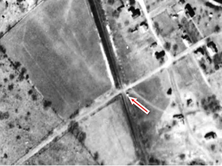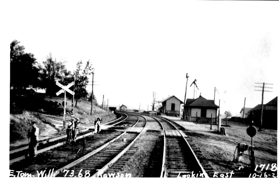 This third depot was built to replace the one that burned in 1904; no actual notice has been found for its completion. The photo at [1] probably dates to the 1920s. The paddle is down to signal the train, presumably for a waiting passenger. A smartly uniformed station agent appears to be on duty at what was mostly only a flag stop. The shot at [2] is a Lewis H. Benton, ca. June, 1930, with a southbound train bearing down on the station; Irving Drake and his sedan are hiding in the bushes in the right foreground. The northward-looking PUC photo at [3] is dated 9/26/1924. The ICC val photo at [4] dates to 8/4/1916. [REFS: CRC52.1904.21][rev072816]