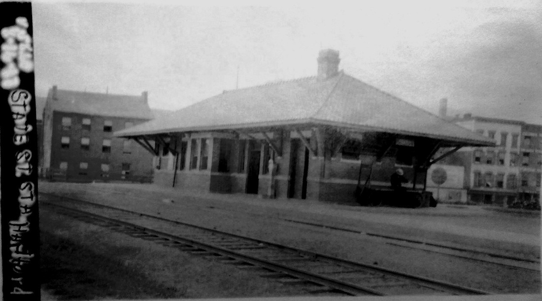 This was the NY&NE station on Spruce St. It was built on land still owned by the company after disagreements over rent and access at the NYNH&H's HARTFORD8 surfaced and alienated the two roads. A May, 1893 newspaper article said the exterior was almost complete, the outside walls covered with metal shingles or plates "called the Cartwright roofing, and painted brown." Additionally, it is described as a two-story structure with a large waiting room and ticket office on the "platform floor," i.e. track level, and baggage and express department at street level serviced from above by a freight elevator. The restaurant was to be run by "Parker" as was done for the NY&NE in Boston, Putnam, and Willimantic. The 1893 NY&NE annual report said it cost $8,500 and, somewhat cryptically, that it was "of a temporary nature, but is convenient and will serve all necessary purposes for some time to come." We have yet to find a photo of this station, but the Sanborn map posted here at least shows the footprint of the structure. The Consolidated objected to this move by the NY&NE, claiming that the wooden structure would be a fire hazard. Ironically, the NYNH&H's own brownstone station would be gutted by fire in 1914. [REFS: NYNEAR18.1894.8; DEN/01/03/1893/04; HC/04/25/1893/01; HC/05/09/1893/02; HC/10/08/1895/01]