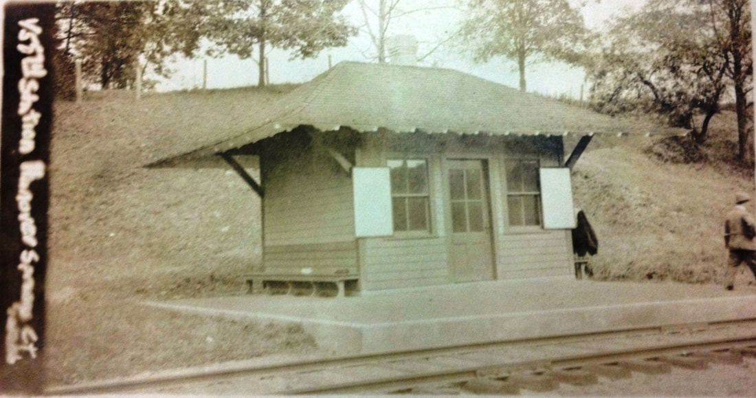 This station was in far northern part of NEWTOWN, 3.39 miles above HAWLEYVILLE, a point which made it the first stop on the Litchfield Branch. Service to what was originally called Mulligan's Crossing began in 1912 and timber was on the ground in April, 1913 for a structure. The Bridgeport Evening Farmer elaborated, saying that "... Mulligan's Crossing is a new station on the Shepaug and Litchfield branch of the Highland Division of the New York, New Haven & Hartford railroad. This new station is in the Hanover district, Newtown, and is for the benefit of the colony of New Yorkers in that vicinity. Pond Brook, a famous trout stream nearby, is, seemingly, the center of attraction for the new settlement of bungalow dwellers in this neck of land." It also corroborates the build date and extols the impact of the railroad on local prosperity, saying that "Railroads are prime factors in opening new countries or assisting in bringing back abandoned communities back into active settlements. In May of 1913, the New York, New Haven and Hartford Road, seeing the advantages in giving Hanover Springs a stop and station on the Litchfield Branch passing through all these properties, did so. When this stop was made at Hanover Springs it brought the farms one hour nearer Greater New York." The comments are especially significant about the reclamation of farms when they were abandoned for urban life and factory jobs in the late 1800s. Edwin Storrs' Shoreliner article echoes the rediscovery of rural retreat and the cottagers' call for a station here so that they would not have to drive to Hawleyville to take the train back to New York City. The other 'creation story' is that tea-bag impressario William Abel Upham requested the stop for easy access from Hanover to the old curtain factory across from the HAWLEYVILLE station that he purchased in 1916 and converted to Upham Food Products. Carrying the rural and comestibles theme further, the locale would be closely associated for the next several years with Paul Pierce, pure-food promoter, advocate of a local farm-loan association, and editor of the National Food Magazine which he published from his nearby home. The build date on the NYNH&H real estate card is, in fact, 1913, with this neat 13x16x10 feet having a granolithic floor and was fronted by a crushed-stone platform. The cars also records the sale of this structure on 11/30/1935 per AFE #29955 and its removal in October, 1936; sale price: $15.00. A coincidental 1936 article in the Bridgeport Post noted that this station had been sold to J.J. Coffey, Jr. of 99 White St., Danbury who planned to move it along the Housatonic River and remodel it into a summer residence. We would love to know if it is still standing and where. Many thanks to all the folks at the Cyrenius H. Booth Library Reference Desk for their research assistance! What would we do without our libraries and historical societies?