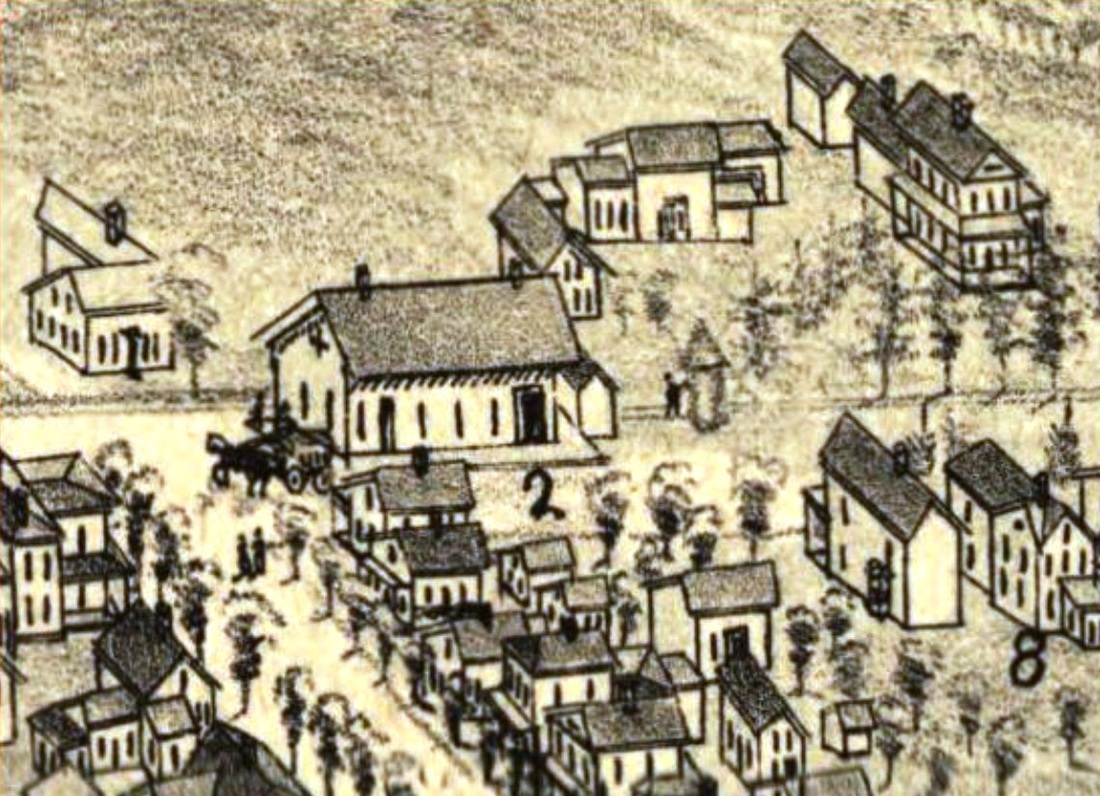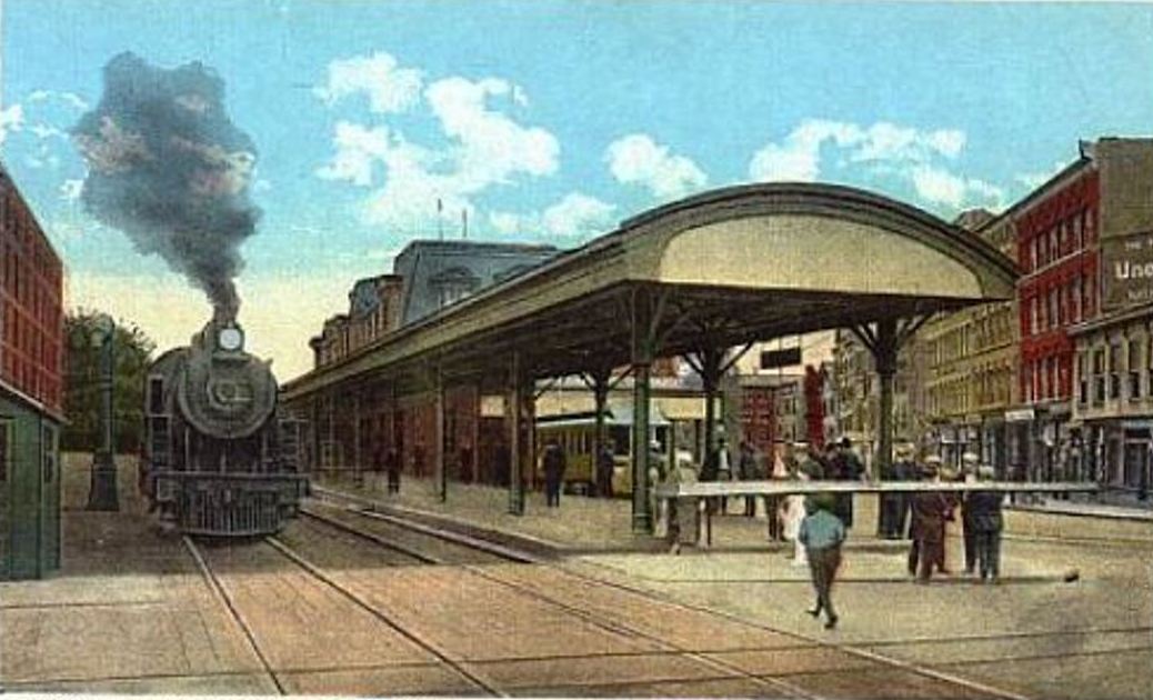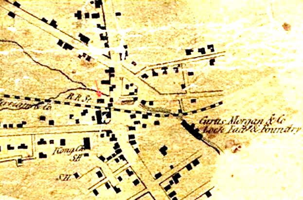 The first depot was at a hotel in what was called the Rogers Block, south of Main St. and on the west side of the track, as shown on the 1852NH map. The first passengers had to disembark below Harbor Brook and walk to the station until the railroad built a bridge for trains to cross the waterway. The depot in the Rogers Block was resurrected after the next one in the Conklin Hotel burned in the mid-1840s and served until MERIDEN/H4 opened in 1854. [rev081413]