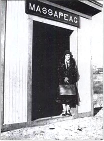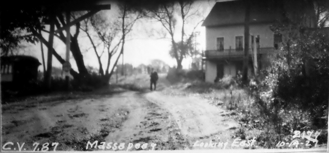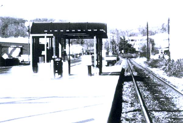The style of dress the woman displays makes it likely that this simple shelter was put up in the late 1920s or 1930s for CVT riders. Passenger service lasted until 1947, and, according to one source, consisted of a coach on a freight train in the final year. [REFS: NLD/04/28/1953/24][rev050317]