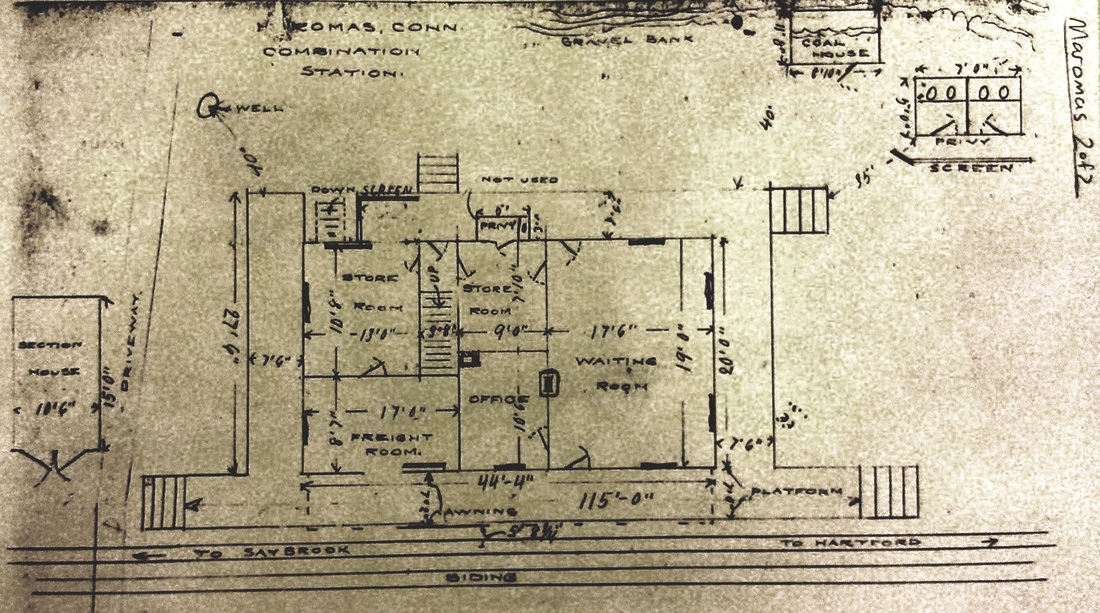 This stop in the town of EAST WINDSOR was established with the opening of the Connecticut Central in 1876. The first station burned and was replaced in 1897. We have no photo yet. The NY&NE real estate map dates to 1888. [REFS: MDC/05/06/1876/02; HC/06/25/1896/05; NHER/02/28/1896/02][rev021014]