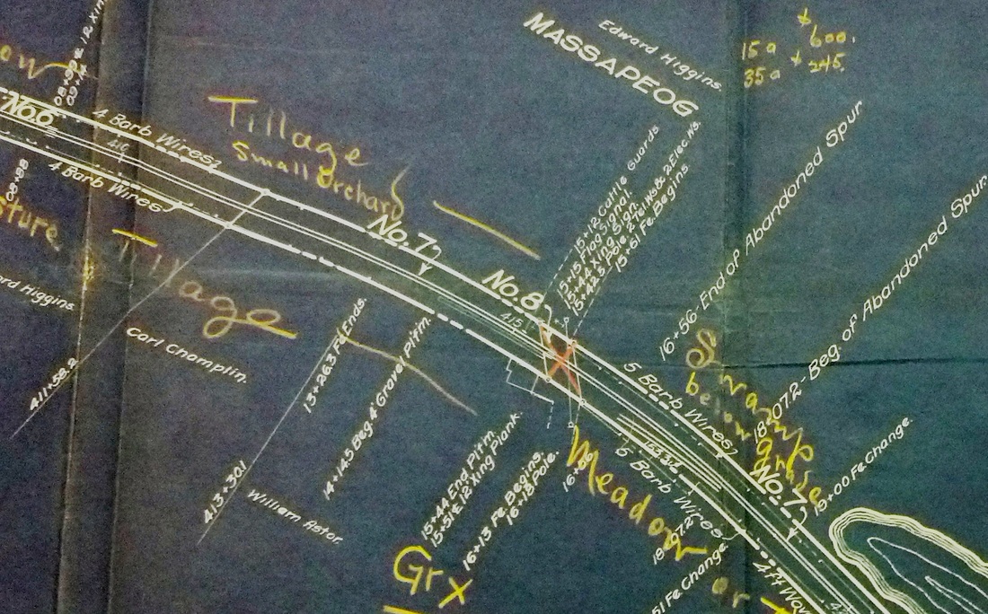 This was established as a regular timetable stop in the town of Montville probably from the 1849 opening of the NLW&P and, as such, appears on the 1854NL map at [2]. The 1883 NLN map at [3] shows the platform and seems to corroborate the shape of the building in the photo at [1], which looks more like a tavern or residence in which depot space was rented or where people, like the gentleman on the stairs to the right, just waited for the train. The 1917 val map at [4] shows the building and the platform. The PUC notes which Max Miller rescued for posterity at [6], possibly corresponding to the 10/14/1927 date of the photo at [5], say that there is a only a platform here, which is seen in the foreground. The name of this station means 'great-water land' or 'land on the great cove,' that body of water being Massapeag, aka Haughton's Cove, today Horton Cove, just to the south of the promontory. [REFS: NLDC/10/26/1852/01; NLDC/09/30/1853/01; NLDC/01/25/1859/02; NLDC/11/22/1859/02; NMB/08/18/1876/04; NHER/07/11/1887/01; HDC/11/20/1865/02][rev050317]