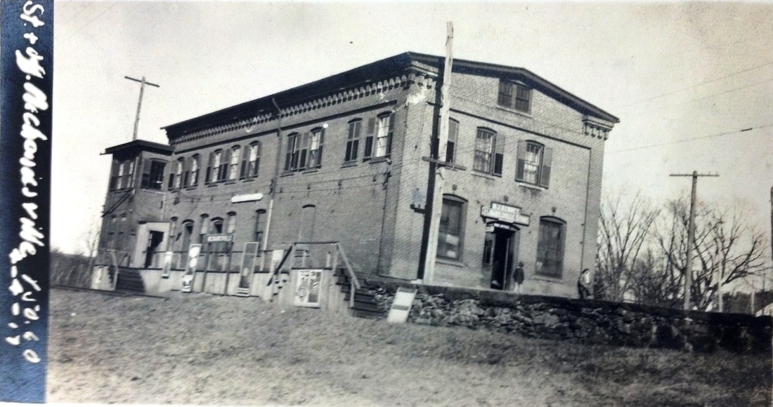 This structure does not match the first station either in windows, foundation, or orientation to the track but the distances to New London and Brattleboro, 40 and 81 miles respectively, are correct for this location. We think it may be the Lincoln Brothers' store which also housed the post office and passenger station. This comes from the Courant which reported a robbery here in 1901. Interestingly, the paper reported in 1904 that lightning struck a kerosene oil tank at the country store, then owned by Frank Millard, and the destruction of the building "included the post office property, the post office being connected with the store." [REFS: HC/07/08/1901/07; HC/07/30/1904/15][rev032213]