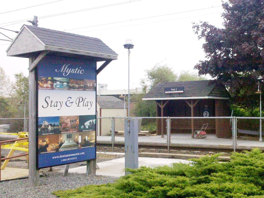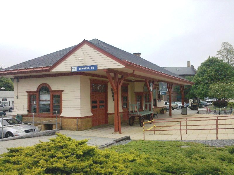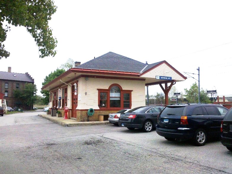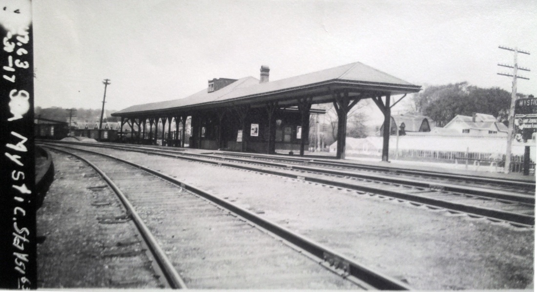 This stop was established in 1858 when the New London and Stonington was built to connect with the NYP&B at Stonington Junction. The first station burned on 7/4/1866. The 1868 map shows the location, although by this time MYSTIC2 would be in place. We have no photo as of yet of MYSTIC1.