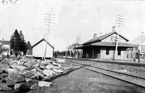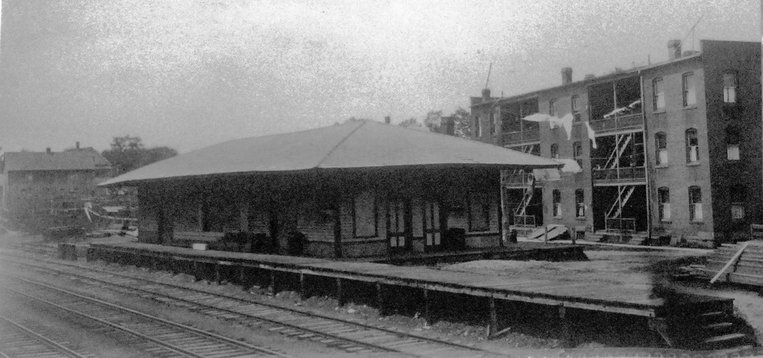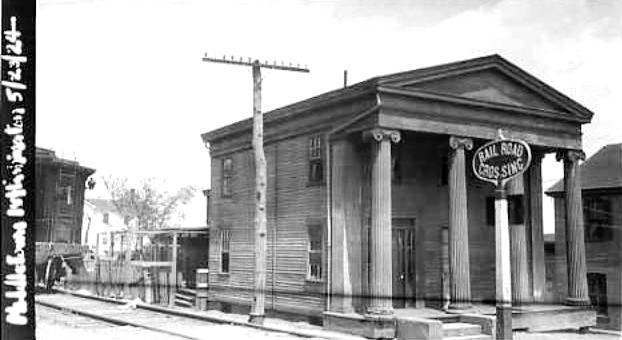 This stop was established in 1849 when the NLW&P opened and the first depot was presumably built at that time. It was destroyed after catching fire from from the adjacent freight house which burned on 10/6/1862. Described as being two-story, the station's upper level also served as a public meeting hall. The railroad loss of the buildings and contents totaled $5,000; $2,000 worth of goods were lost by the Thomas Mill Co. No photo yet. [REFS: BA.17.1864.00 (10/6/1862); HDC/10/08/1862/04; CC/10/11/1862/03; SR/10/08/1862/04][rev100318]