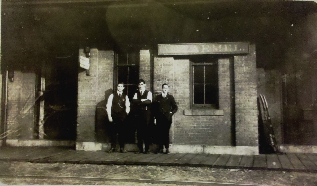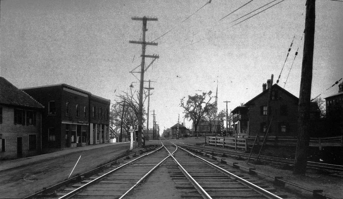 It had been claimed from time to time that the MONROE station was moved to Stevenson in 1905 to take the place of the one that burned there in that year. As revealed by the Bee, it was not MONROE1 that was moved but MONROE2, the offspring of the 1890s industrial boom. The rumor in July, 1894 was that "the depot [MONROE1] is to be used as a tool house and a larger one built." By February, 1895 an agent was hired, apparently first doing duty at the tiny MONROE1, and "... a new and commodious station with freight house is to be erected immediately, with telegraph and telephone connections..." and by May... "The foundation for the new depot is being laid, this week, and Monroe may soon be proud of a grand new station building... 50 feet long by 25 feet wide... rapidly approaching completion," later in the month. No notice has been found about the actual opening but, by this time the Botsford Brothers' plow works was operating among the copper factory's "several other buildings, a tenement and a store, likely Milwood's, aka Millwood Hall where social events were held. Monroe Station had indeed had become a 'place' and was referred to as such just like Botsford or Stepney in the newspapers. The locale was flourishing, or was it? Perhaps affected by the copper collapse across the street, suddenly the 10/18/1895 Bee reported that "the Monroe station has been closed, the agent M.T. Ryan, having been transferred to Lanesville. Trains will stop on signal as here-to-fore, but tickets will have to be procured on the cars." Next we learn on 8/11/1905 that "the station building at Monroe that has been closed the past few years, is to be moved here [Stevenson] and placed on the same site of the one burned, but it will be much larger." In September, ... "the large depot at Monroe station has been taken down and was moved here, last week Thursday night, to take the place of the depot burned a few months ago." And finally in October: "The large station and freight house built several years ago at Monroe but never opened, [italics ours] has been moved to Stevenson to take the place of the depot which was burned. The old Monroe station now in use, it is said, is to be renovated and improved." Thus on 9/21/1905 MONROE2 became STEVENSON2, as seen in the val photo of 10/27/1916, and MONROE1 resumed its old post. Where exactly MONROE2 originally stood is uncertain. Perhaps at the FCPA crossing? Is the foundation still in the ground? Why did the station never open and remain unused for a decade? Where was Millwood's store and dance hall? Many questions remain. We are speechless! [REFS: NBE/07/27/1894/02; NBE/01/11/1895/02; NBE/02/01/1895/04; NBE/05/31/1895/02; NBE/06/23/1899/10; NBE/08/11/1905/07; NBE/09/29/1905/10][rev010418]