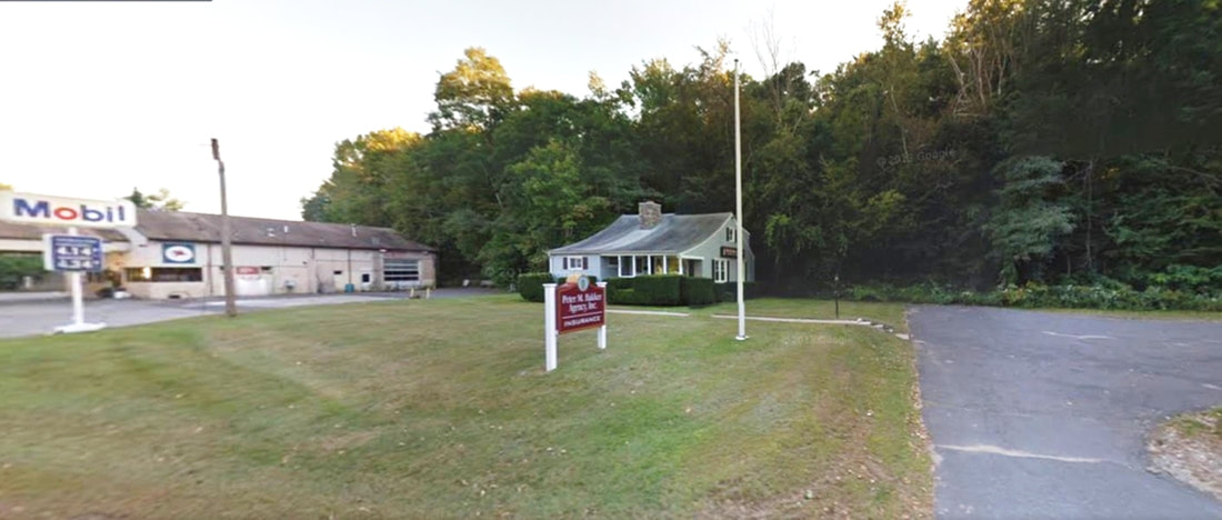 The first station in the town of New Hartford was established in 1870 when the Canal railroad extended the Collinsville branch six miles up to Pine Meadow. Work on the extension had been commenced in 1868 by a resurgent NH&N which was about to be free of its lease to the NY&NH and was determined to expand to new markets. Though it had the legal right dating back to 1848 to build to the state line, the NH&N stopped short of bridging the Farmington River at this time and established a temporary terminus here. The 1874 Beers map at [1] shows the depot, engine and freight houses about where the Mobil gas station and the adjacent house stand today [3]. Mr. Bailey's birds-eye map [2] dates to 1878 and gives a fine view of all the railroad facilities; click here for the full map. The first train ran on 5/23/1870 and the Courant reported in July, 1870 that "three regular passenger trains now run daily over the new railroad from Collinsville to New Hartford." That actually meant, of course, from PINE MEADOW down to the FARMINGTON junction with the NH&N main line. While a newspaper article in May, 1870 said there was no structure here, by November, 1871 there is a report that a "town road to the depot is now being built in Pine Meadow." That road, seen as High St. on the Bailey map, goes down to the depot site where stands the house that may be the same one seen today. Could this have been used as the first station? Otherwise we have no actual photo and do know only from the railroad's 1876 annual report that "the temporary terminus and stations outside the village and inconvenient of access to the business" had been superceded by a depot at 'the business,' meaning the Greenwoods Co. north of the Farmington River. Two other things to note on the Bailey map. His placement of the CW/NH&N crossover at the first depot site is incorrect because we know it was farther east. Assuming his customary accuracy otherwise, his portrayal of the stone abutments at Albany Tpke. is interesting because it has one of them in the middle of the road! The railroad commissioners mention the town's unhappiness with the construction but they dodged that issue and just did their job certifying the work as safe on 10/27/1876. [REFS: CC12/26/1868/02; HDC/07/30/1869/04; WH/05/27/1870/02; HDC/07/21/1870/04; WH/11/03/1871/02; DC/04/08/1874 /02; CRC23.1876.17; NHNAR40.1876.5; RRC24.30 (10/27/1876)][rev062715; rrd010518]