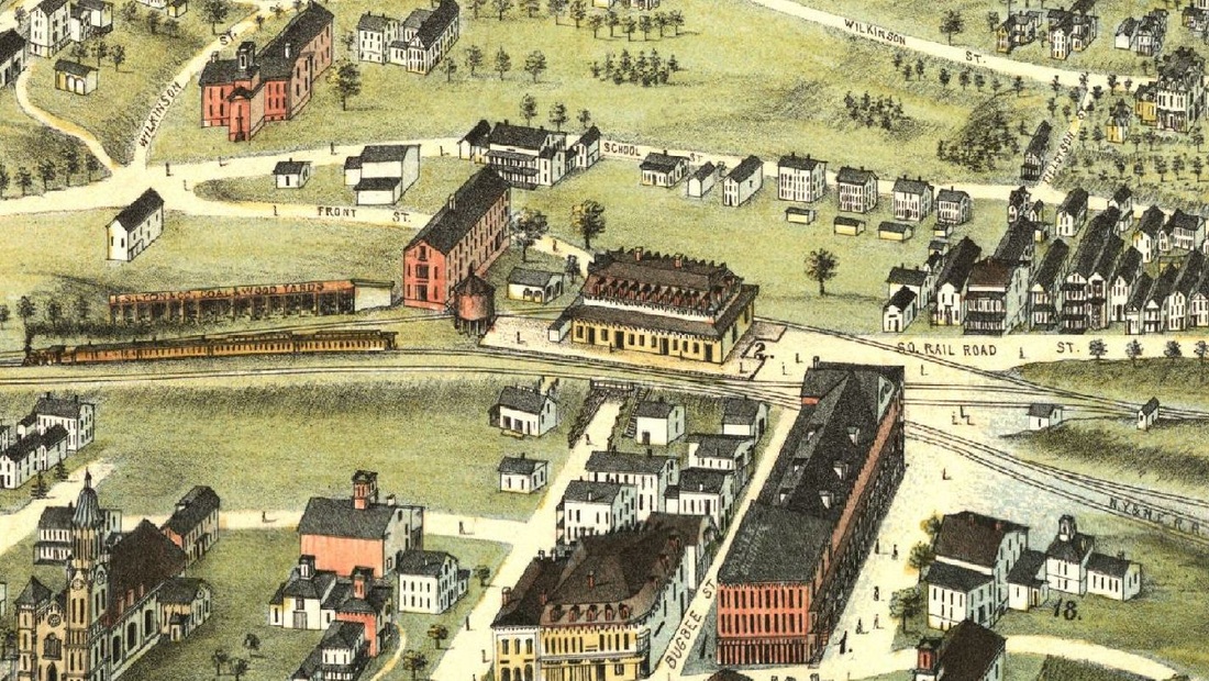 According to the newspaper, was up and five trains daily were expected to begin stopping here on November 1, 1871. This area of Hartford was a new subdivision, developed by William Francis, Esq., a lawyer and real estate investor. The Courant reported that "the most important auction sale of the season" would be taking place here on 6/4/1872 and quoted another newspaper as follows: "This morning we took a look at Parkville. It is a pretty region, and well adapted, topographically as well as by its nearness to the more central parts of the city, to the purpose of cheap and good homes. It is all finely graded, and many handsome streets, along which young shade trees have been set out, crosses [sic] the domain in ordered series. On these new streets there are already, perhaps, nearly half a hundred houses, neat and unexpensive, such as mechanics and others will want. On one side of the domain are the railroad tracks of the Hartford and New Haven, and Hartford, Providence and Fishkill roads, with the railroad station right there, newly built expressly for Parkville; also a post office so that the residents need not come to the regular Hartford postoffice [sic] every time they want a letter or newspaper. Horse cars will run there before many years – very likely within a short time. Those in the other ends of the city who do not care to walk out there can go on the excursion train which leaves the Asylum street depot on Tuesday at 11:00. There’ll be a band of music and a free lunch... This month all trains on the Waterbury road will stop at the Parkville station which will very much increase the already favorable facilities for reaching that part of Hartford." The newspaper of the following day said 140 buyers committed themselves to nearly $56,000 in lot purchases, the majority of which had 50-ft frontage. This real estate venture is not unlike our website namesake Tyler City, which was also touted as an egalitarian community with "Homes for the People" in Orange. Backing up the dating provided by the newspapers, this stop is not found on an August, 1871 timetable but does show up on one in 1872. The naming of this neighborhood appears to derive from the Park River that cuts through this western part of the capital city. [REFS: HDC/10/21/1871/02; HPFTT 9/18/1872: yes; HDC/05/29/1872/02; HDC/02/15/1872/02; HDC/06/03/1872/02; HDC/06/18/1873/02; CRC30.1883.34: closed; reopened 1/24/1883][rev033113]