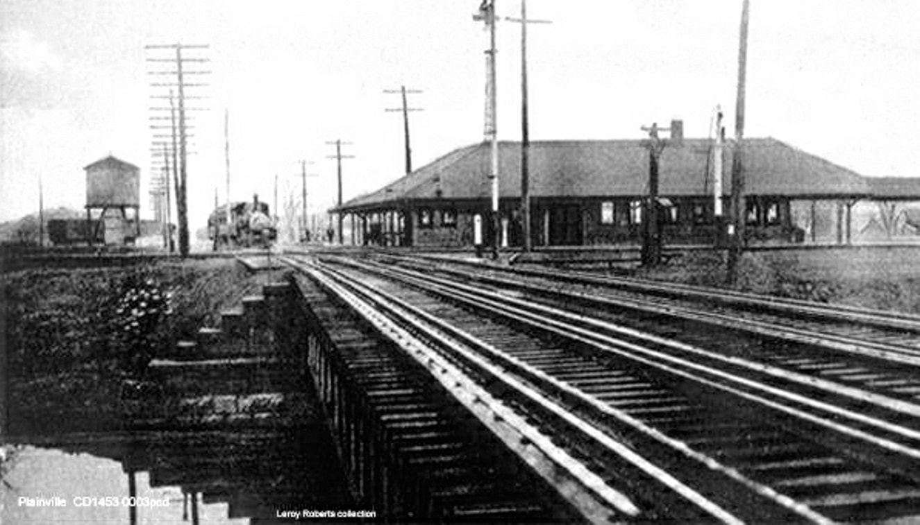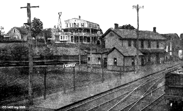 This stop in the town of Plainfield was established by the HP&F in 1854. We have not yet found a photo of the first station that burned in 1893. [REFS: 1872TT: no; 1878TT: yes; HC/07/15/1893/04; RRC28.329 (8/7/1893)]