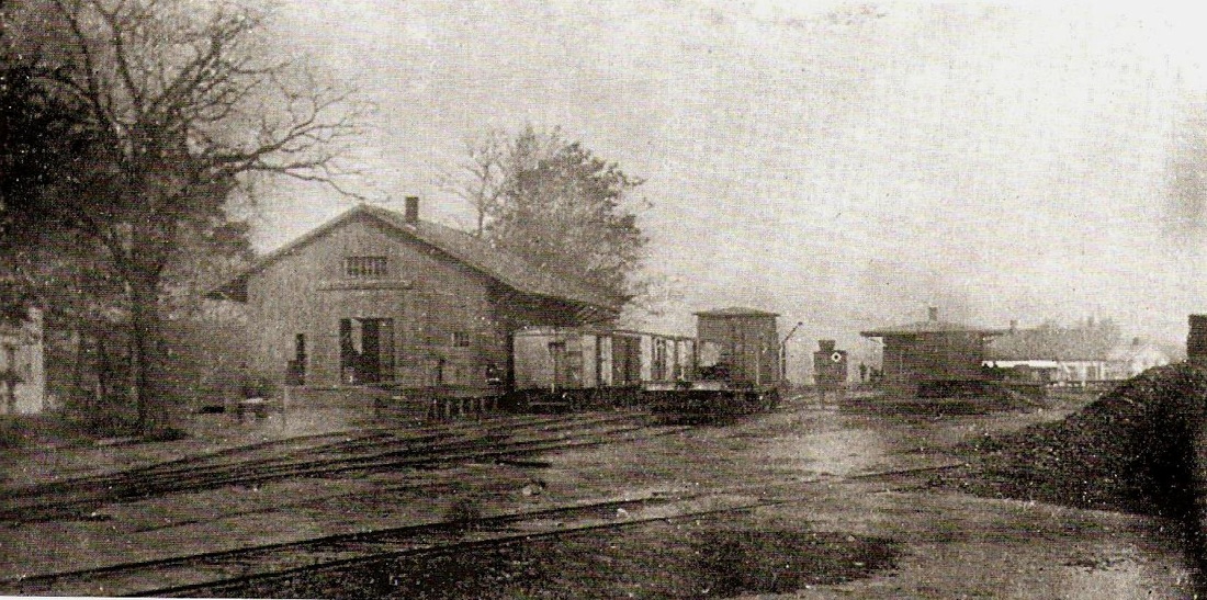 This stop in the town of Stafford was established in 1850 with the opening of the NLW&P. We have no photo yet of the first depot. [REFS: HDC/01/23/1874/01]