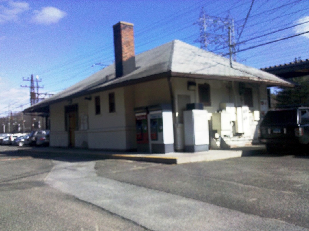 With terra cotta walls and Spanish tile roof, this was the station mentioned as being under construction in the 1909 annual report. A fortunate find in the Harrisburg Patriot in April, 1910 says this station was up by that time, thus nailing the date down more firmly. The paper was commenting on the new kind of construction material when it reported that the NYNH&H "recently built a hollow tile station at Rowayton, Conn.," and that other railroads like the Lehigh Valley and the DL&W were doing the same. In addition to being fireproof, these new structures were said to be cooler in the summer and warmer in the winter because of the 'dead air' within the hollow blocks. The Pawtucket Times added that these buildings were more economical in the long run because of savings in maintenance and repairs over wood and had lower insurance premiums because they were fireproof. It also said that new stations in Connecticut, our CEDAR HILL3 and TERRYVILLE2, had been built similarly, as had ones at Barnstable, Foxboro and North Scituate in the Bay State. As captured in the image at upper right, ROWAYTON4 was one of two, the other being NOROTON, in 1955 to get platform canopies designed by famed World Trade Center architect Minoru Yamasaki. The lower left photo was taken in 2011. [REFS: NHAR38.1909.7; HP/04/25/1910/05; PT/02/19/1912/01; R86] [rev072516]