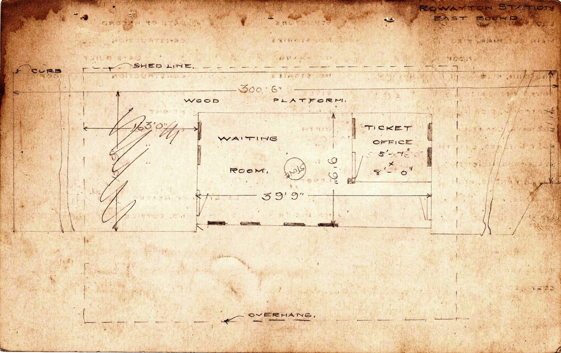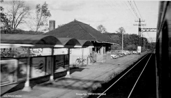 This small station was built with the four-tracking. The val photo at [1] shows this structure without its covershed on 11/3/1916. Covershed added in the meantime, the PUC shot at [2] taken on 2/25/1931 looks west toward Stamford. The 1915 val map [3] shows this station south of the track and ROWAYTON4 north of the track. The images at [4] and [5] are from the 1910 real estate field card. The 1896 build date is on the front in red pencil and the reverse side has a sketch of the floor plan.The photo at [6] is an eastward-looking view of what was left of this station in the 1950s, once again without the covershed, and probably not too long before the station was removed.[rev040113]