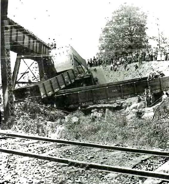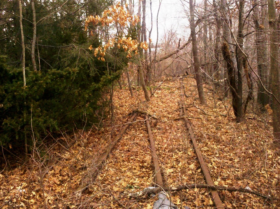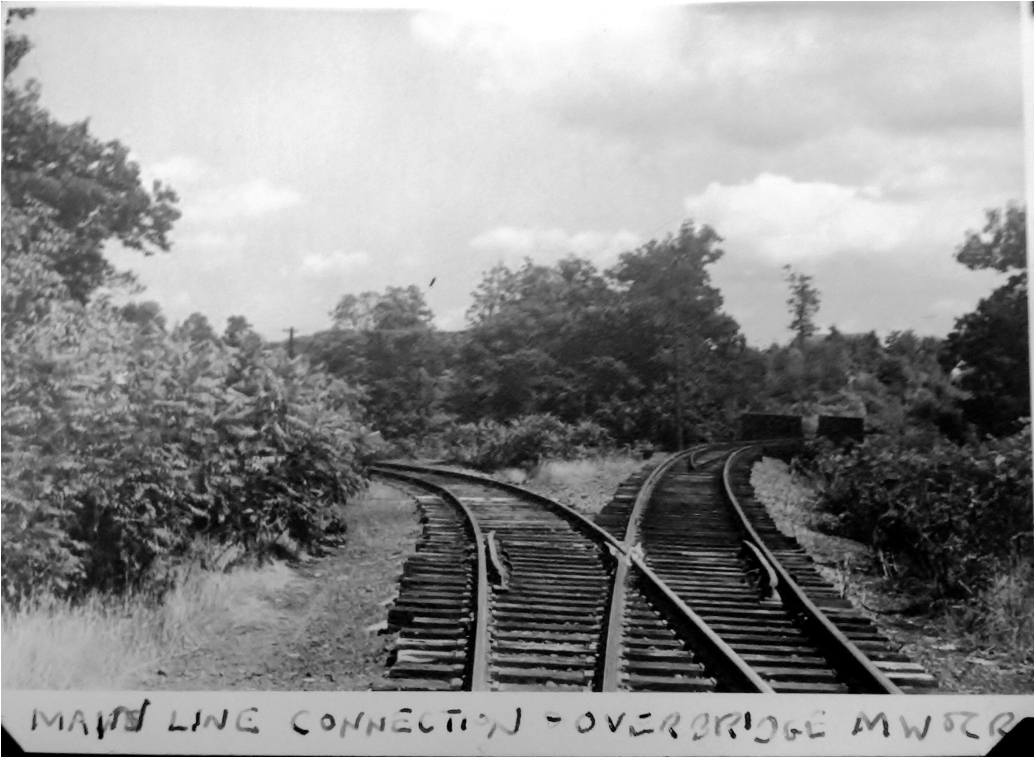 The name for this Meriden location may not go back to 1888 and probably was not a passenger station but it is nevertheless an interesting railroad meeting point with a history of its own. Later NYNH&H ETTs referred to this point as QUARRY JUNCTION for the fact that the York Hill Quarry about two miles to the east was accessed by the interchange here. The bridge over the NYNH&H was originally constructed in 1888 for the new M&W line to Waterbury. The photo at lower left appears in the history of the successor company, the Meriden, Waterbury & Connecticut River RR, written by Glover A. Snow [click here]. The Consolidated must have been greatly annoyed at this 7/19/1889 incident after it fought long and hard to prevent any crossing of its line by the upstart railroad, claiming at one point in litigation that the property rights on all parcels it owned went from the heavens above down to the center of the Earth below! The photo at upper left looks east toward the bridge in the 1980s and the corroborating shot at middle was taken in 2012. The track to the right heads for the bridge which is just out of sight. The one going left is the interchange track which the Consolidated was forced to accept. It curves to the north to descend down the ridge where the onlookers perched in the accident photo. The bridge stands today off Gracey Ave., still spanning the Amtrak line as seen in our 3/15/2012 northward-looking photo at right. [REFS: SR/05/13/1870/08; CRC37.1889.14: connection; S30][rev040113]