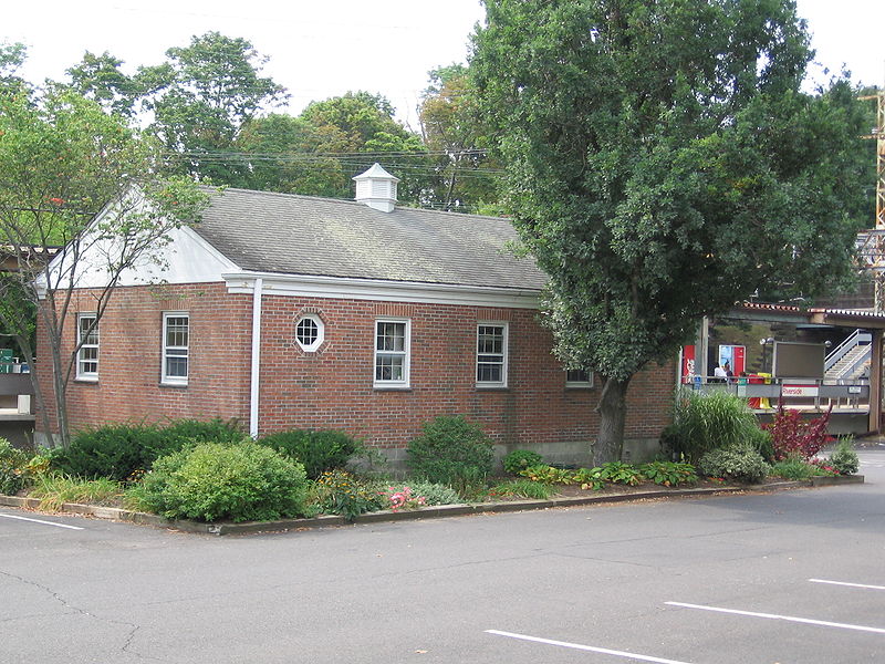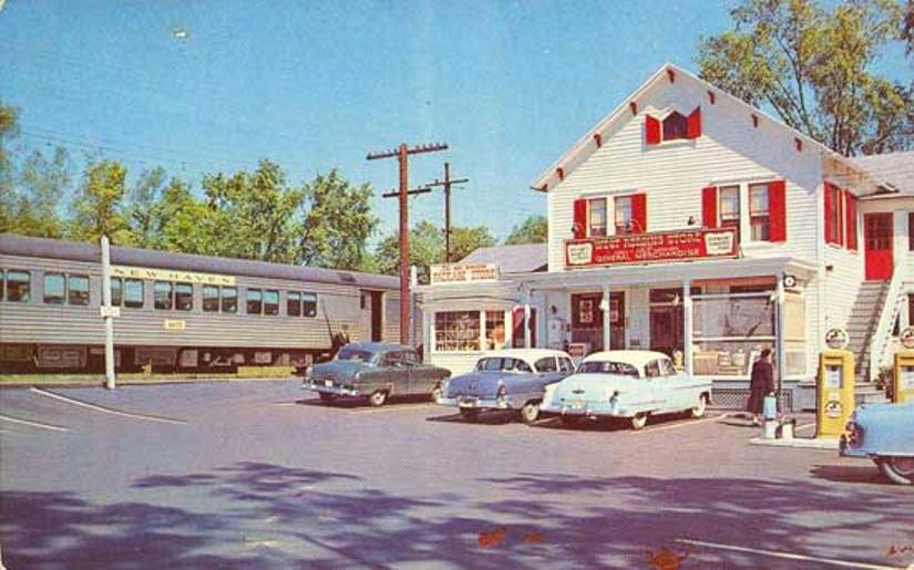 This may be the structure that the NYNH&H built in 1952, probably on the expiration of the agreement for use of REDDING2. John Roy describes this as "a no-frills concrete block passenger shelter" so either we have the wrong building or it has been dressed up by the time this undated photo was taken. [REFS: R84]