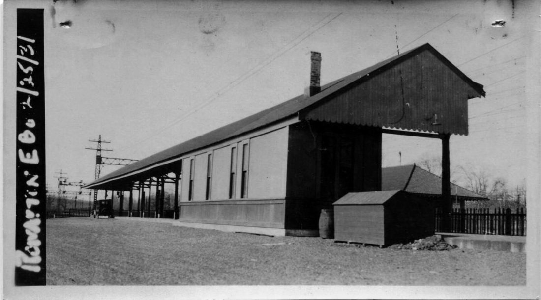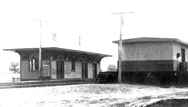 IMAGES: [1] 1905 shot with milk cans lining the platform; note boxcar on house track behind the station. [2] 10/10/1916 ICC valuation photo; Lord notes new porch added. [3] 1892 topographic map. [4,5] 3/1911 real estate card, front and back. [6] 6/30/1915 ICC valuation map; south at top, station was in southwest corner of grade crossing.