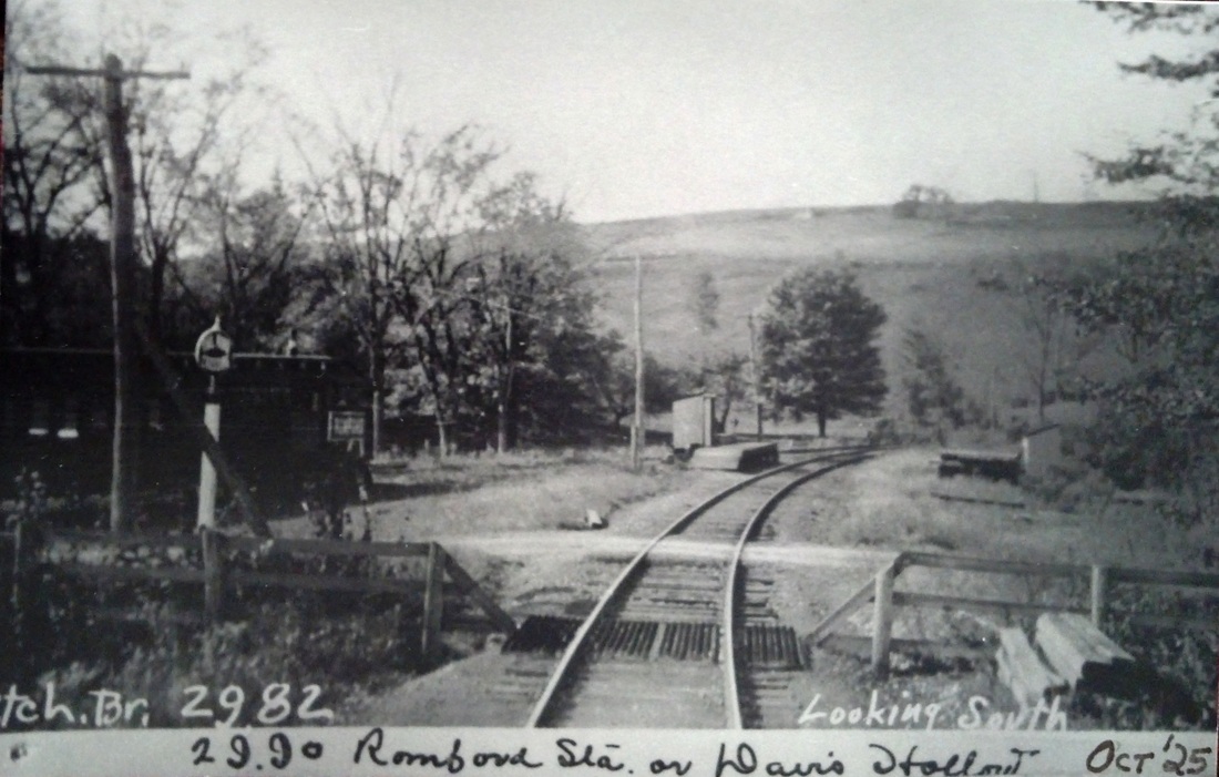 Lord says the immediate replacement station after the fire was a passenger coach, for how long we do not know. Newspaper articles in 1914 said ROMFORD and MORRIS to be discontinued for reasons of economy but this stop lasted to between 1923 and 1928. All passenger service on the Shepaug ended in 1930 and freight service lasted until the line was abandoned in 1948 and the track was taken up. No railroad structures remained for for removal or retirement at this stop by the 1938 SSRR.