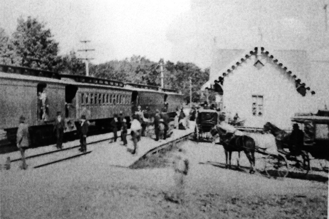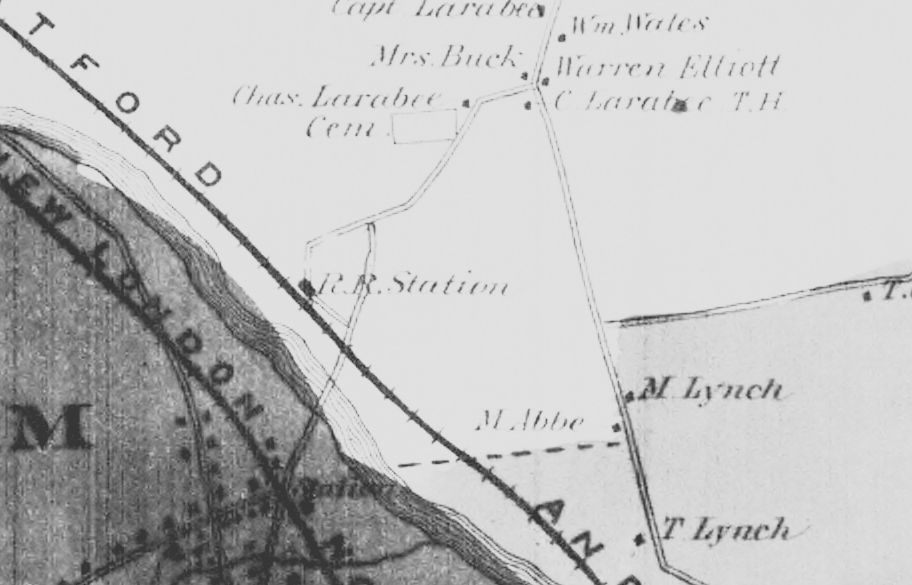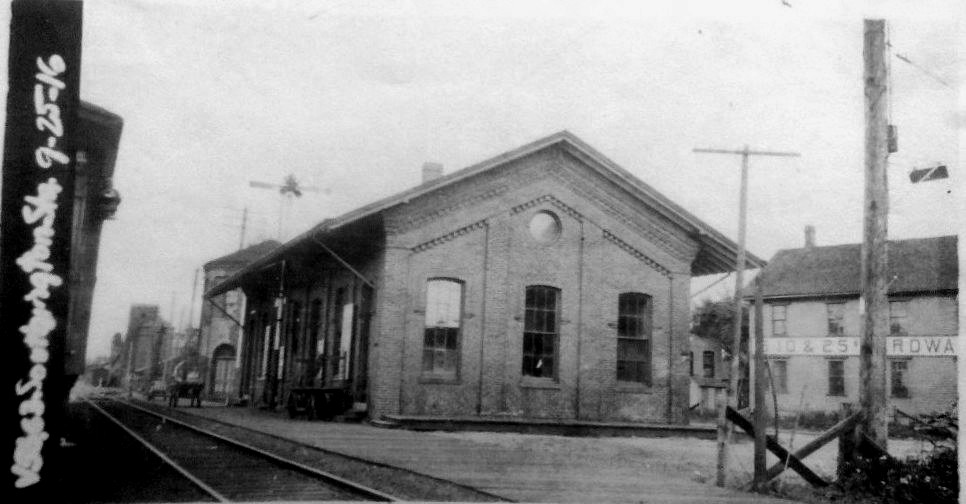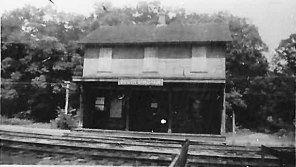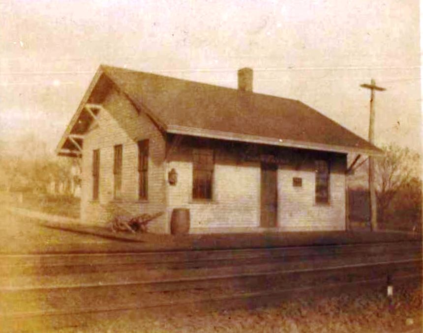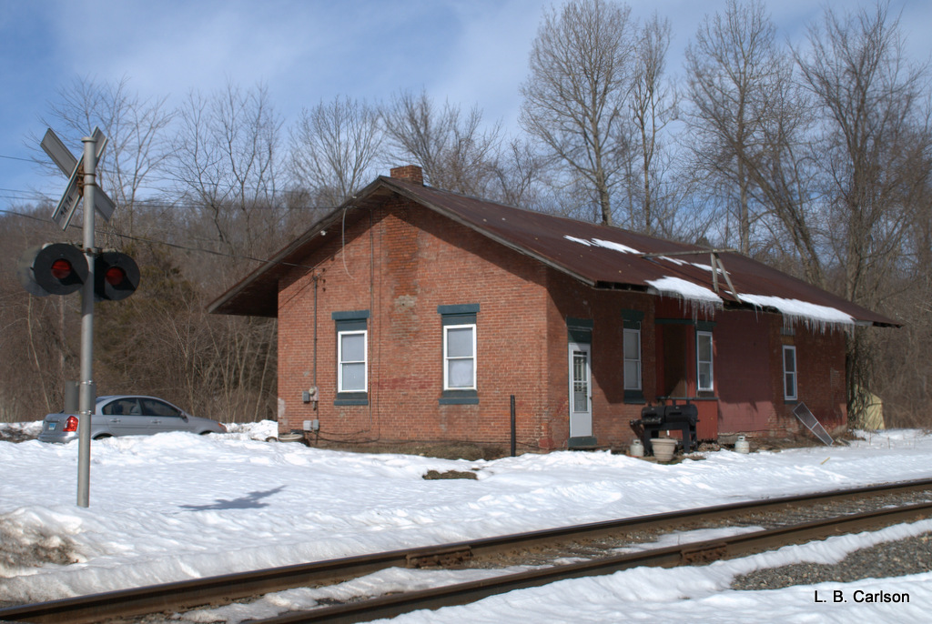 This stop was established in 1850 by the NLW&P. The location is seen on the 1857TC map at upper left and its image is found on the 1878 bird's-eye map at upper middle. The station is still extant as seen in the 2013 photo at right. [REFS: R90][rev041713]