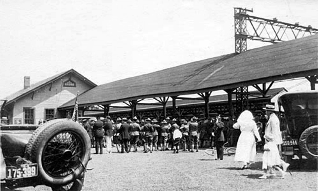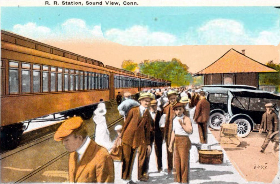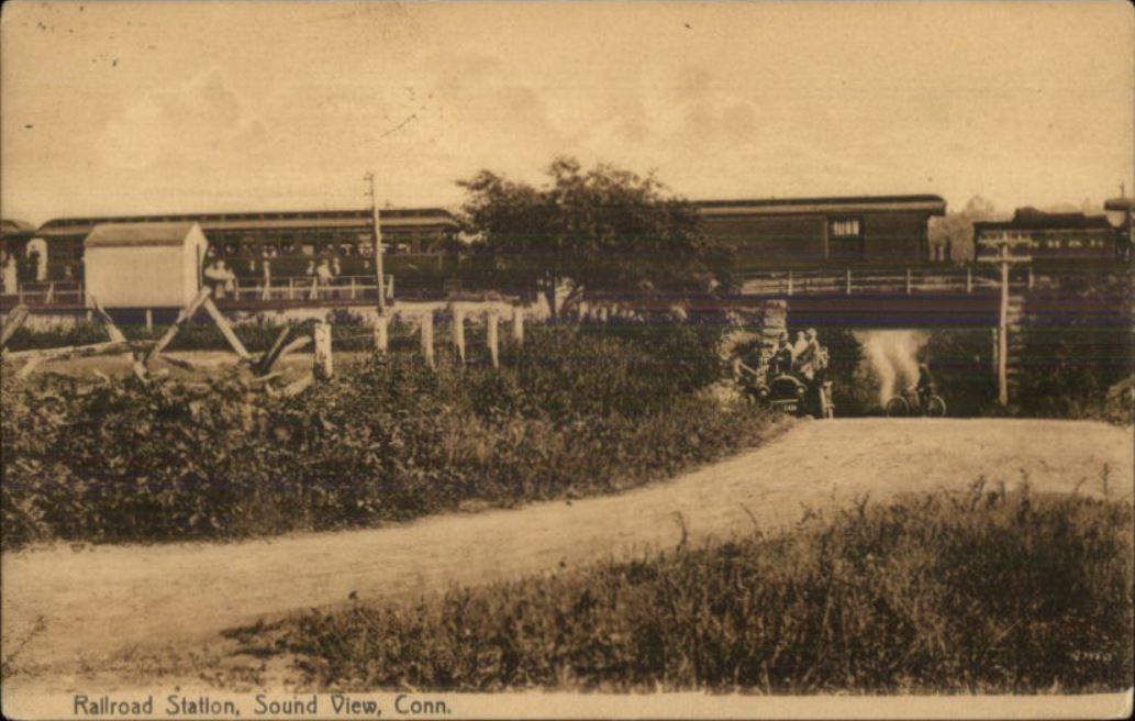 IMAGES: [1] 10/16/1926 ICC valuation photo; [2] 6/30/1915 ICC valuation map showing trolley tracks on Sound Beach Ave; [3] Doughboys gather, possibly for 11/26/1917 encampment at nearby Innis Arden estate, now a golf club; [4] 1924 0821 postmarked card. Westernmost edge of platform visible at right. Note trolley tracks, also seen on val map; [5] 1960s northeast view; [6] southwest view after high-level platforms installed by May, 1974. [7] 12/6/1913 tracing has 1892 as the correct build date. [REFS: SAD/03/13/1893/01; NHER/03/22/1899/10; SAD/01/23/1900/01: both stations, separate post offices robbed; HC/01/23/1975/68: firefighter arson on 1/15; HC/05/23/1974/95B; NRIS (National Register Information System) ID: 89000929, nomination form p8.2; R80][rev053122, 050323]