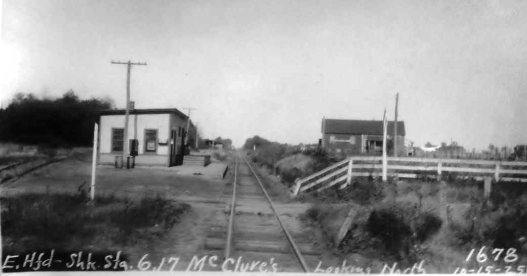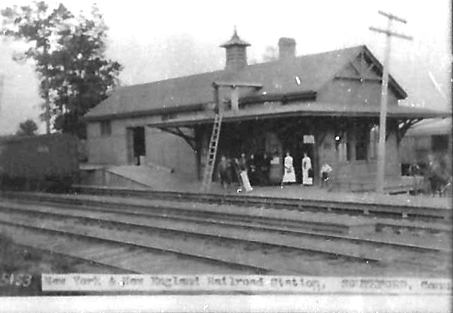 According to the Courant, this station burned in 1890 after the passage of the boat train that evening, even though everything had "appeared to be all right" The depot was described as being "a small inferior looking building" and it was hoped that the new one would be "more in keeping with that enterprising and growing village." [REFS: HC/09/06/1890/06]