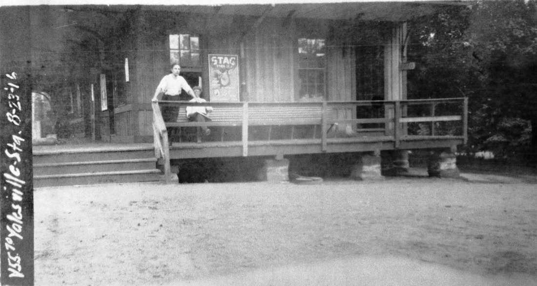 This stop was established for a euphoniously named mill town in ELLINGTON. Image [1] is an NY&NE 1888rev real estate map and [2] is the 1915 val map, both showing the depot in the southwest quadrant of the grade crossing. Area tobacco farmers and the namesake woolen mill probably utilized the freight siding that is also seen on the maps. The mill operation dated back to 1854 and the property, consisting of a five-story stone and brick building with wing additions, engine room, boiler house and coal shed, 22 tenement units, frame store and office buildings, was transformed by the Avery-Bates Co. for the production of coated papers in 1905. A canal carrying water from the Hockanum River supplemented the 150-horse power Green-Corliss engine in the plant at that time. Image [4] is the 8/9/1916 val photo. With inroads from the automobile, the truck and the competing trolley line that opened in 1906, all service seems to have been eliminated here by the time the 10/20/1927 PUC photo [3] was taken. Neither the station nor the freight siding are seen. [REFS: HC/03/10/1891/06; HC/04/06/1896/06; HC/03/15/1897/06; HC/02/01/1905/13; HC/07/29/1905/12; HC/11/20/1905/05; HC/09/09/1907/12; HC/03/17/1906 /15; K121][rev021014]