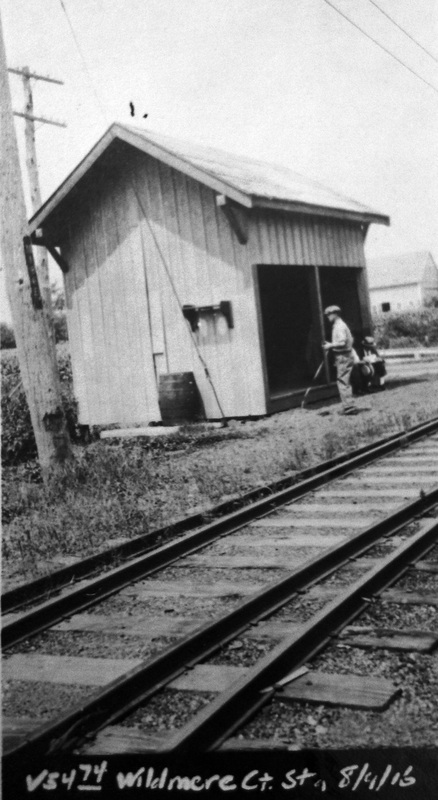 We do not know the build date for the structure seen in the 8/14/1916 ICC shot at left but this is the only photo we have ever seen for a depot here. The field crew noted the depot as well as a platform and a mail crane at this location. The 1915 val map shows a siding that may have been used for the gravel pit, brick works, and freight. Whatever the situation, it did not stop a local poultry breeder from using this stop for her own purposes when she "raised the signal at the local depot" in 1913 to halt the train but did not board it. Instead, as instructed by a Windsor Locks customer, she handed him a live rooster in a bag as he appeared on one of the car platforms! In spite of the fact that this Windsor village was the largest in terms of school population This stop was eliminated in 1928, the headline reading "Railroad Erases Wilson Station." Corroborating the photo, the structure was described as "a one-room shelter from the weather, remote from the thickly populated section of the village and was never more than a flag station." Contradicting the latter point, we have schedules showing regular stops here in former times but to the larger point of loss of service, it appears to have been as a boarding point only, our schedules showing at least one train leaving passengers until ca. 1952. An attempt by special act of the General Assembly to reestablish the flag station for boarding trains at WILSONS failed in 1935. [REFS: HC/04/15/1907/06; SR/07/07/1912/12; HC/09/13/1913/02; HC/01/29/1917/04; HC/08/10/1929/21; HC/03/08/1935/16: SB 470][rev072816]