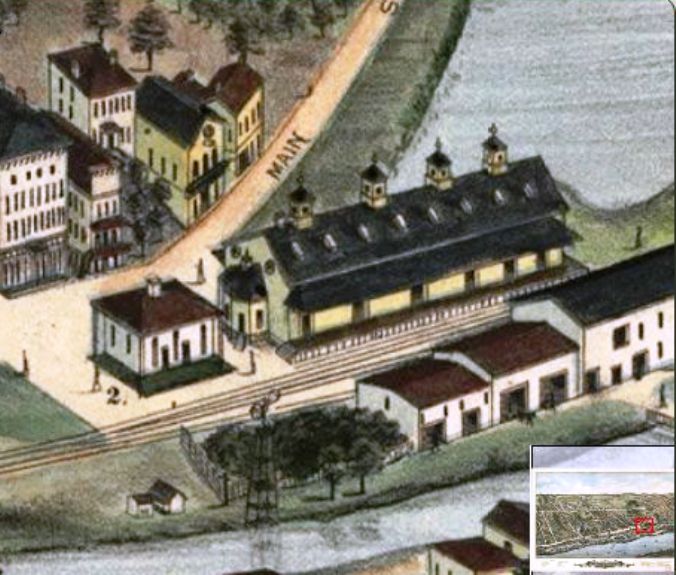 This was likely a combination station serving both freight and passengers. The location is seen on the 1855HC map. We have no photograph of this station.