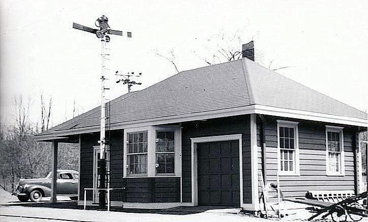 The photo at top left shows the original 1939 structure built to replace WILTON1, complete with vintage car parked along the north end where a portico can be seen. Not only was that later enclosed, as John Roy says, but an addition seems to have been put on the south end. The other two photos show the enlarged building, and date to after early 1961 when, according to Cornwall, electrification ended and the wires, no longer seen, were taken down. WILTON2 still stands in 2011 on the east side of the main. [REFS: C89,104; R109]