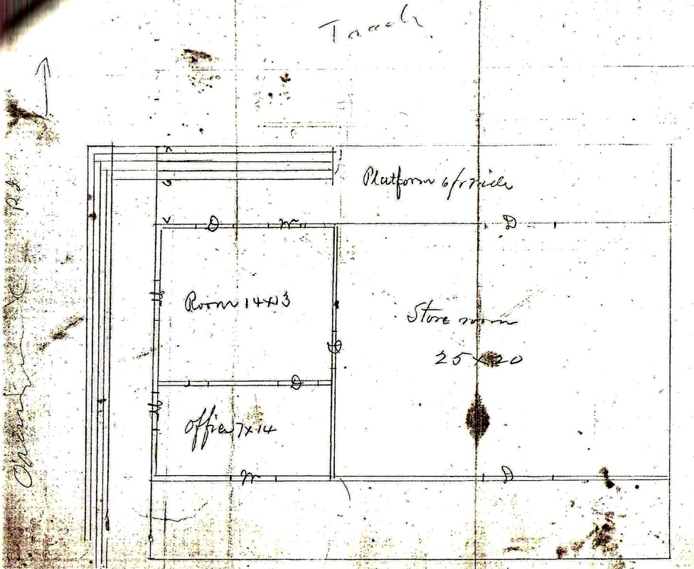 [4.46.4] Hand-written and -drawn design plans for the Orange station. These papers are in the OHS collection, along with a list of contributors who 'subscribed' funds to go toward the cost of the structure. The fact that it was built with community moneys allowed this building to become town property, and, after passenger service was discontinued, it was later utilized for municipal services.