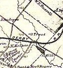 [4.41.1] This is Dogman's crossing, also known as Allen's or Kennedy's, mileage point 4.11, at the blue arrow to the on the map above. This appears on the map to be a dead-end road but on older maps we have seen this road went considerably farther north. Apparently there was a crossing of enough importance to make it onto the official list at this mileage point.