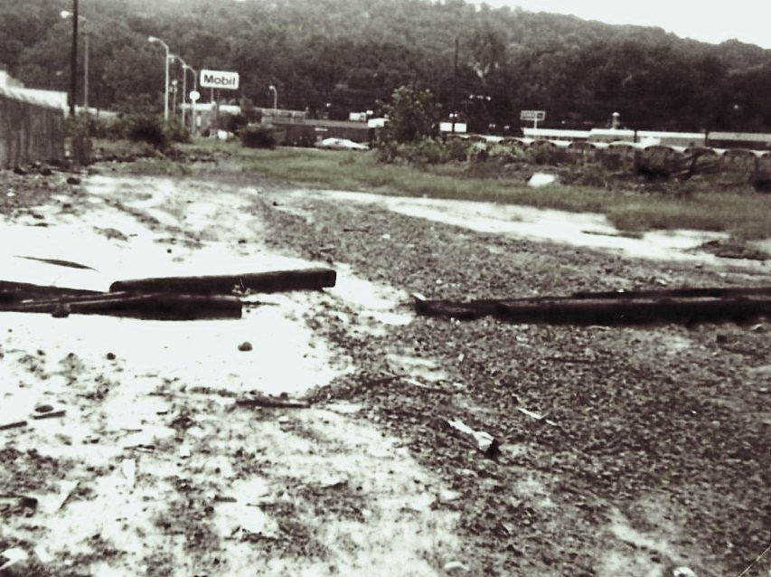 [4.85] Even after the floods of 1955, a few ties remained as late as 1980 along the old NRR right of way. If memory serves, this is around the end of Chestnut St.