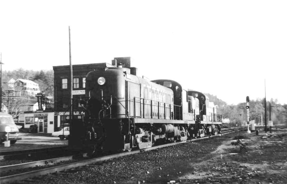 [4.62] Birmingham Iron Foundry (BIF), which began operations in 1836 as Birmingham Iron and Steel Works, was one of the large manufacturing concerns to which the Derby road brought direct railroad service. Prior to that, raw materials and finished goods had to be carted over the Naugatuck River to and from the NRR's (East) Derby station. In this advertisement, our New Haven-bound NH&D train is pulling into the Birmingham station, which is just ahead on its left and across the street from the factory complex. BIF merged with the Farrel Foundry & Machine Co., established in 1848, to become Farrel-Birmingham Industries in 1927, rearranging the initialism from BIF to FBI. The Farrel Corporation is still headquartered in Ansonia today.
