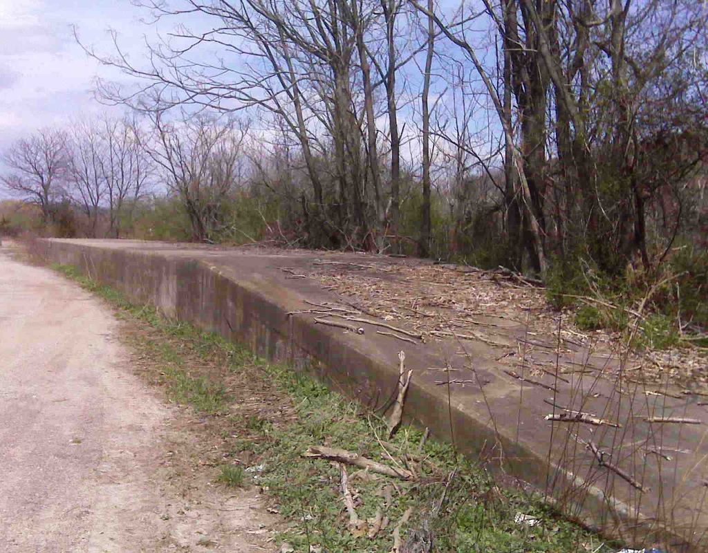 [4.64.5] Concrete loading dock, which dates to a later period than what is shown on the 1940 map above. This is probably the location of the 'old coach' that served as the foreman's office and tool room. The view looks north toward Division St.