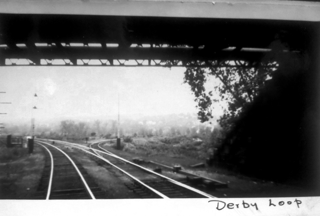 [4.64.4] Two views from the area north of the Derby-Shelton passenger station. The upper shot looks south and the station can be seen in the distance on the right. Looking north from about the same spot, we can see the track going off to the left where the old Derby Pit area was.