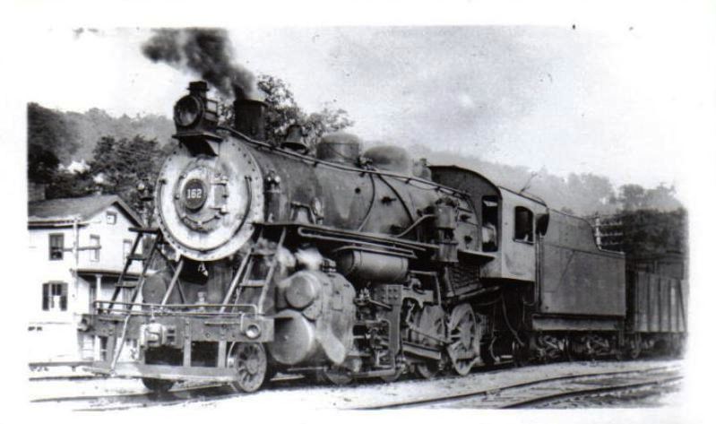 [4.61.2] A Derby Jct. quintet! The image at [1] is NYNH&H #496, a Schenectady K-1-a, built in 1896, with 20x28-inch cylinders and 63-inch drivers, formerly NYNH&H #427. The Derby Jct. tower sign can be seen in front of the engine's smokebox. The photo at [2] is #2461, a T-2-b Alco built at the Richmond Works in April of 1913 with 19x26-inch cylinders and 51-inch drivers. The shot at [3] of the DERS engines was taken by Don Woodworth on December 18, 1964. The nearer engine is DERS-2c #560. The image at [4] is CNE #162. The photo at [5] is thought to be in the late 1940s with FA #0415 on the point leading a train up the Naugatuck line. That easternmost bridge would be removed in 1955 after being damaged by the hurricanes of that year. Here all three look well maintained as does the causeway trestle both to Derby on the left and to Shelton on the right. The view at [6] shows the south end of the triple bridge, with the old NRR track still connected and cutting off to the right. At left are stub-ended tracks which met the old covered bridge. We have yet to determine what that the building at the river's edge is.