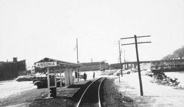 [4.82] The Ansonia passenger station and freight house in the mid 1950s, just before the deluge. The freight office is now single-storied after a fire that reportedly occurred in the 1940s.