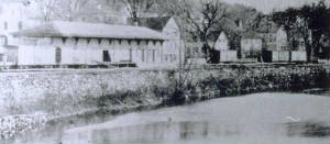 [4.63.0] This venerable structure was once part of the BIF complex. It stood here for years, readily visible from Rte. 8. and near what used to be the corner of Foundry St. It was set back from today's Main St. and west of the railroad station. Note the hoisting apparatus in the air to the right of the building, still seen ca. 1980, as testimony to the heavy 'lifting' that was done here.